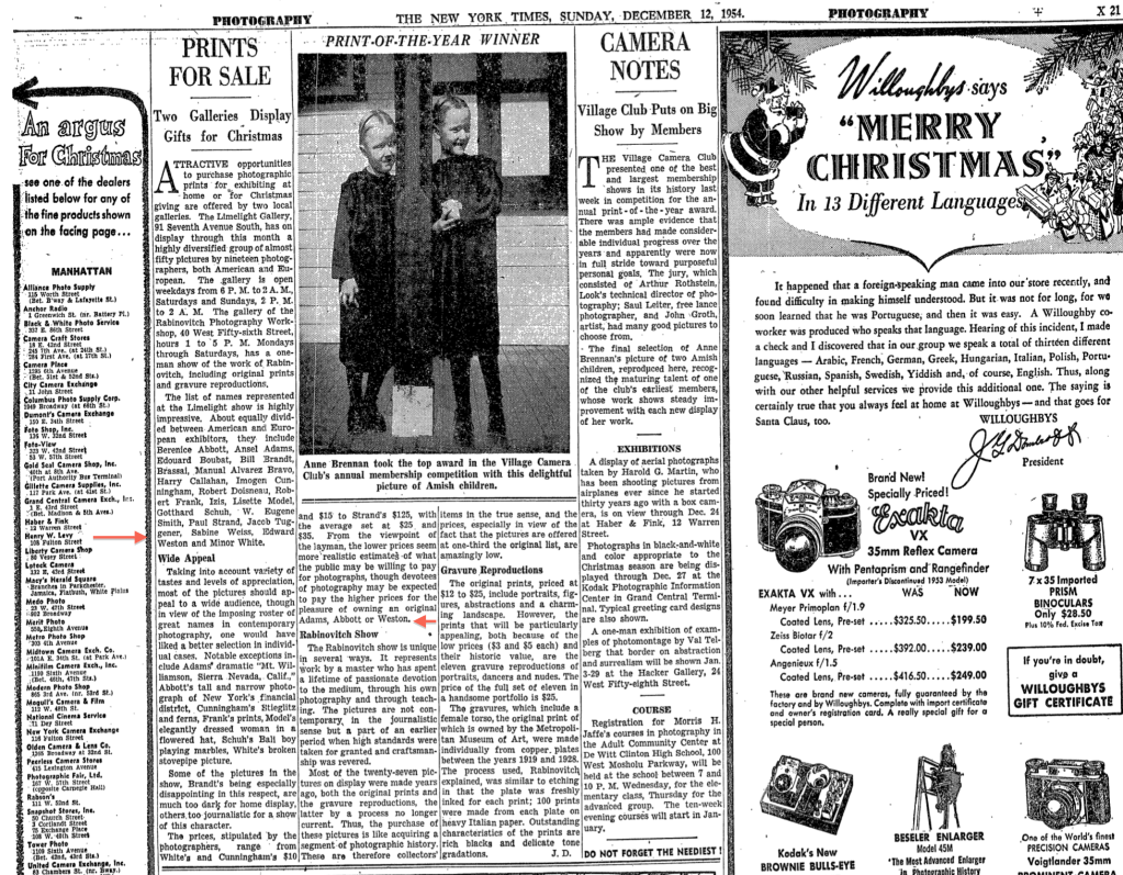 24 “Camera Notes: American and European Prints in Sale Show,” The New York Times, 28 November 1954, X14.