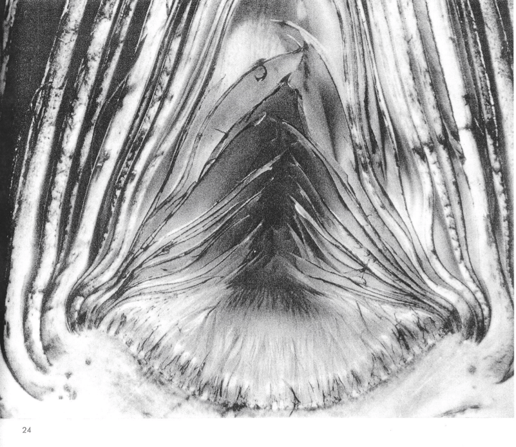 Plate 24, Artichoke Halved: “24 Artichoke, Cut in Half: A piece from 1930. The group of vegetable photos that Weston produced contains photos of such things as cabbage leaves and this. People were unaware of the life force of plants until Weston discovered it as beautiful lines. He said, ‘The lay public will scream in surprise, because they’re seeing it for the very first time through an artist. The artist becomes the interpreter and an intermediary.’ Not only Weston, but all of the work by good artists are that way, but I think those words especially befit this piece. (Noruo Ina).”