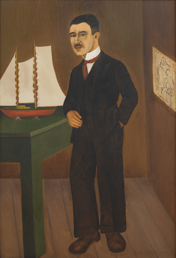 Dr. Eloesser was a close friend of Diego Rivera and Frida Kahlo as well as Kahlo’s physician. In this portrait, Eloesser is depicted with a model of his yacht “Los Tres Amigos.”