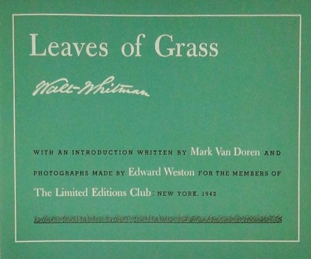 Edward Weston, one of America’s outstanding photographers, has arrived in Tucson to make a series of pictures in this region which will be included in a limited edition of Whitman’s “Leaves of Grass.” … / Weston said yesterday that the edition “will not try to recall Whitman’s day, but be the America of today since his writings went far beyond any specific region or time.” The photographic collection Weston will make in the next six or seven months while touring the nation will be of people and places, anything which represents America of today. / …[19]