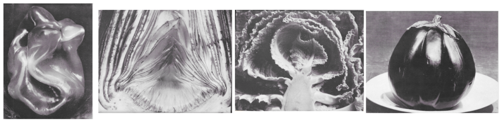 More to our point, the artistic contents also feature a special five-page pictorial titled “Edward Weston Presents: Four Vegetables.” These classic Weston photographs, Pepper, Artichoke Halved, Kale Halved and Eggplant, are each accorded a handsomely reproduced full page illustration.[29] In a later book on modern printing, Armitage explained: “… Some of Edward Weston’s photographs of the amazing forms of the more common vegetables were included so that people would really stop and look at nature’s magnificent constructions—a pleasure too often ignored.”[30]
