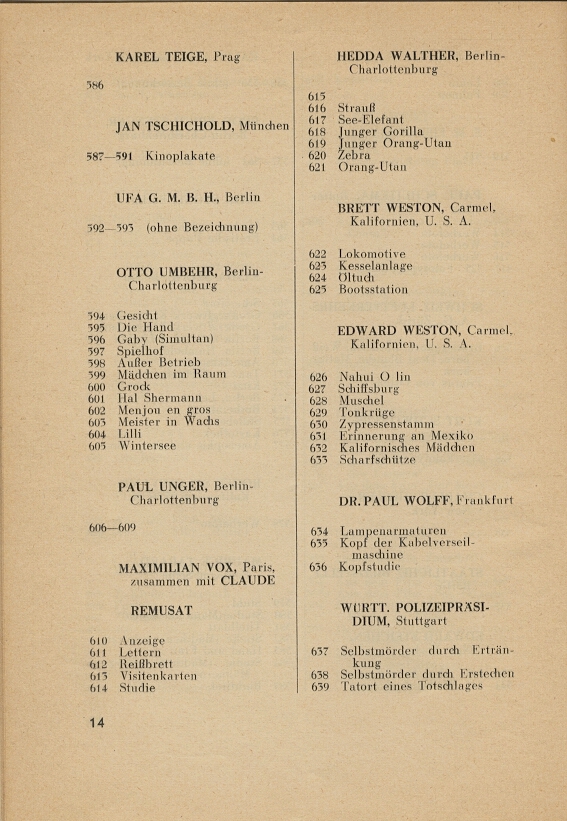 Weston’s association with progressive photographic movements was pivotal to his aesthetic growth in the 1920s, and brought him into the sphere of influential German artists and intellectuals. As a result, he is well represented in German and Austrian publications: fifteen known references in Germany and two in Austria.