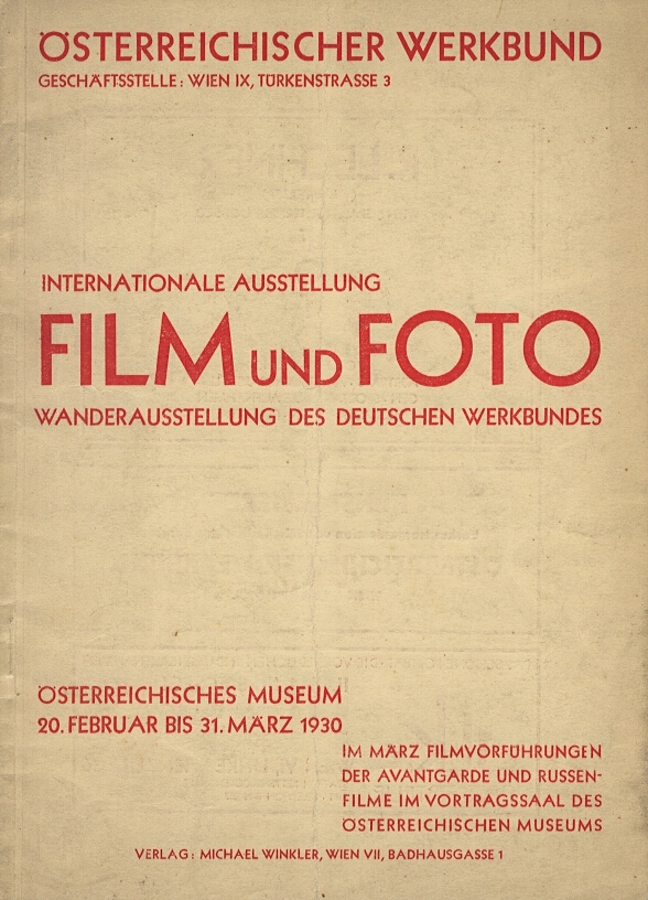 Cover, checklist and illustration of Galván Shooting, Film und Foto exhibition catalogue, Vienna, 1930 (Collection of Paul M. Hertzmann, Inc.)