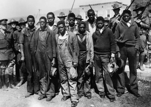 It was the heart of the Depression, jobs were scarce and millions of people were hoboing around America in pursuit of employment. On 25 March 1931, nine black youths, ages 13 to 19, a group of white men, and two white women illegally hopped a freight train bound from Chattanooga to Memphis. On this ill-fated journey, a brawl between the young African Americans and the white train hoppers escalated from minor charges of vagrancy and assault to false but perilous accusations of rape brought by the two white women. Those unfortunate nine came to be known as the Scottsboro Boys and their tortuous struggles with trials, pending executions, and appeals—including two at the United States Supreme Court—erupted into a cause célèbre whose tragic consequences reverberated around the world.[1]